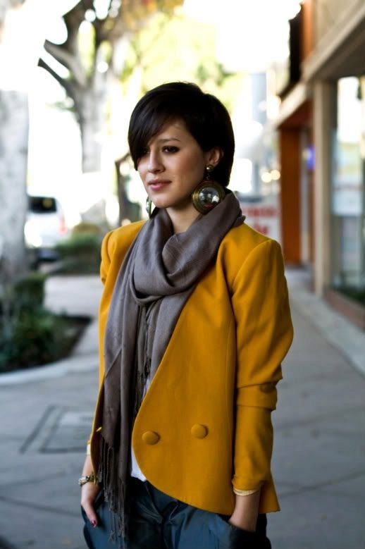 Dry mustard color can be attributed to the yellow and the green tone. These jackets look great as a top for a business suit. They will suit green-eyed owners of red hair or burning brunettes. Blondes in a yellow-green jacket will lose their brightness and individuality, and against the background of such a noticeable tone, they will simply become completely invisible.