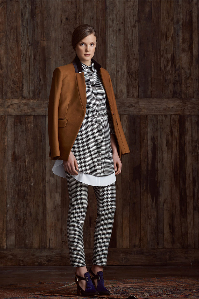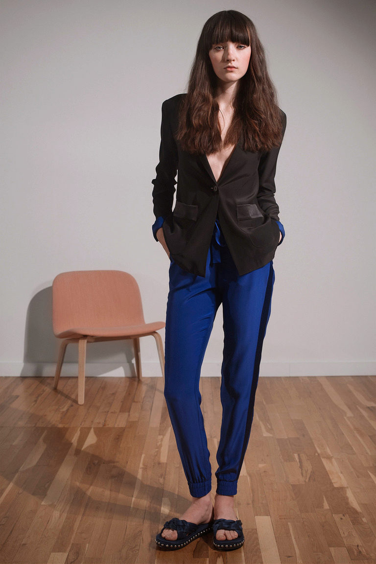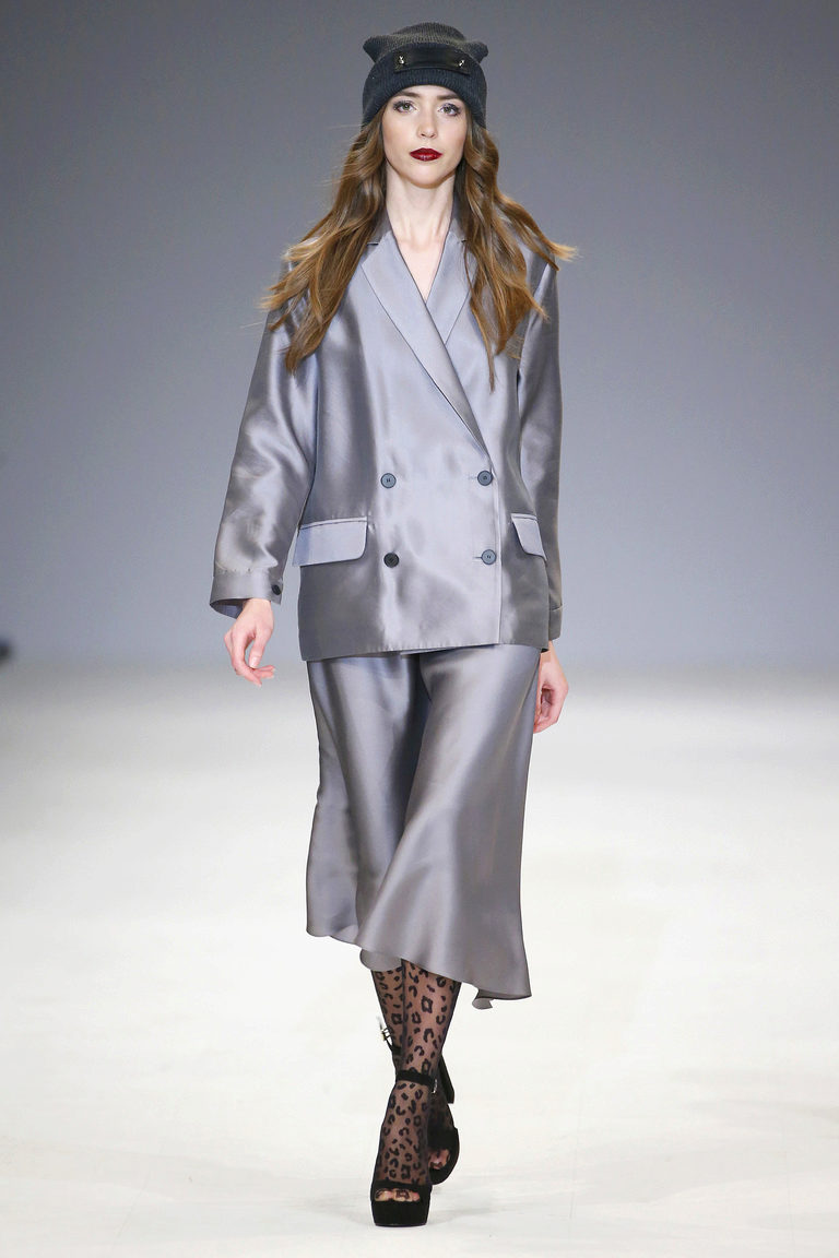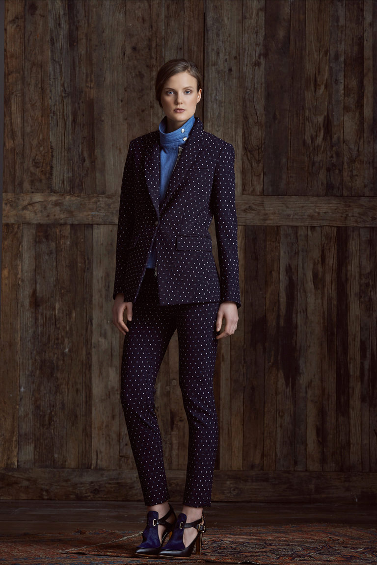 - If you are wearing a blouse, top or turtleneck, a shortened jacket of dark but noticeable colors - purple, chocolate, green tones - will match with it.