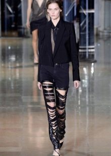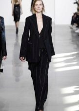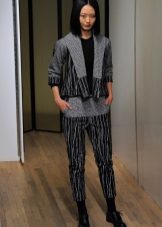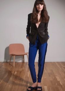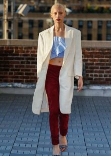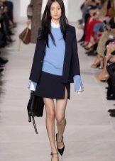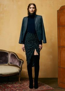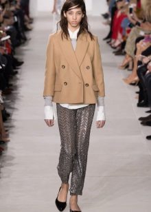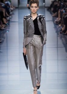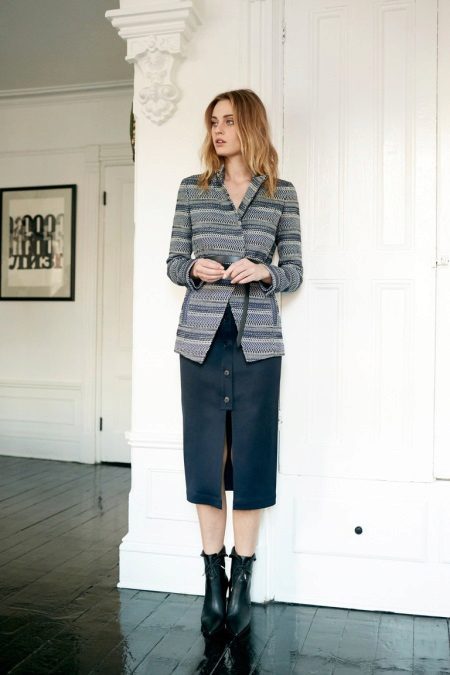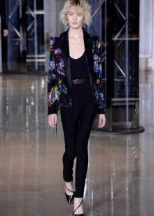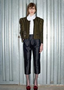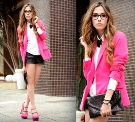 A short monochrome, but bright enough jacket with a restrained skirt or tight-fitting trousers should be completed with stylish heeled shoes. So you will be able to focus on the jacket, but do not deny the attention of their legs.