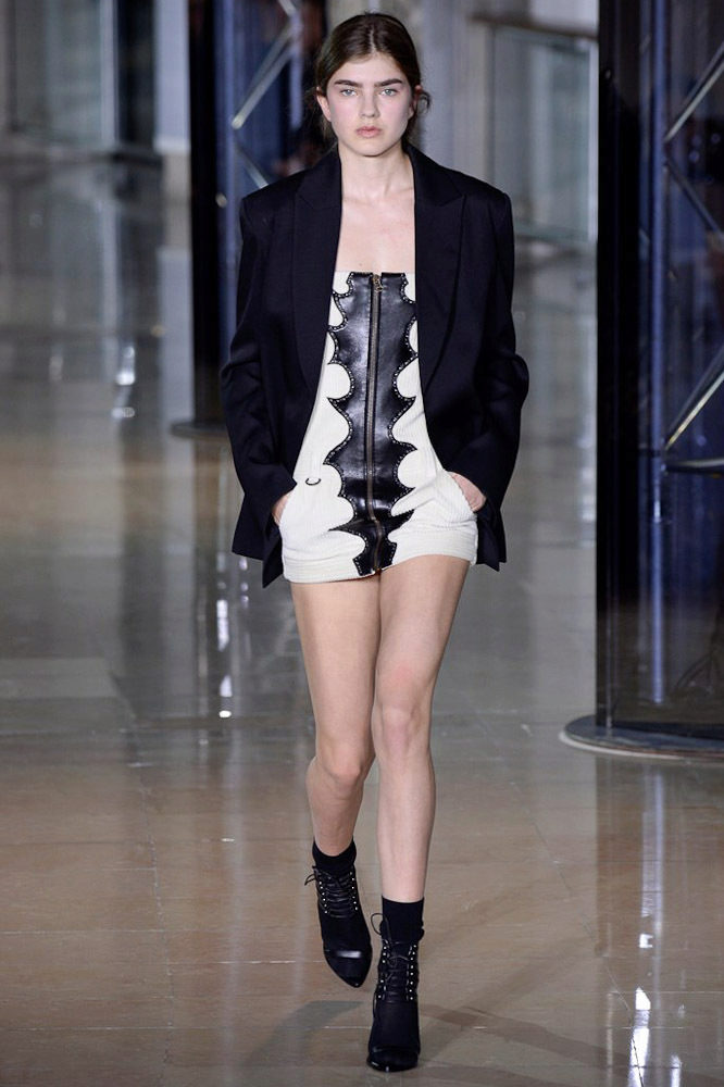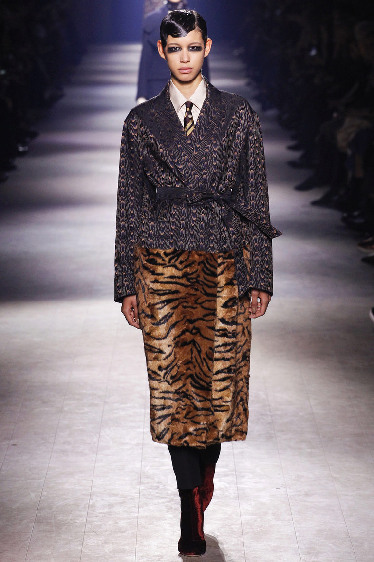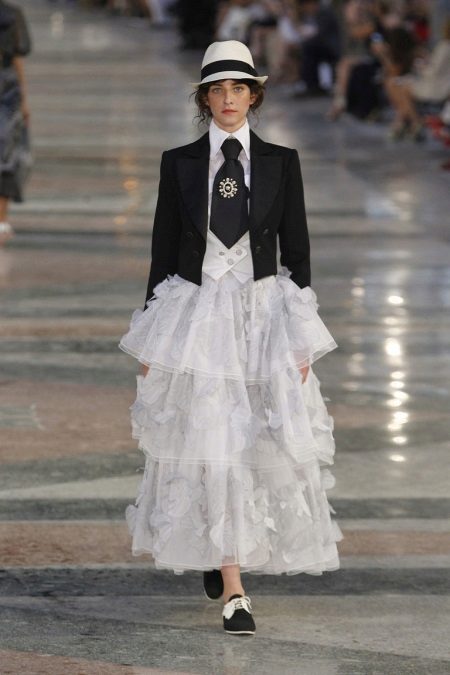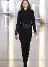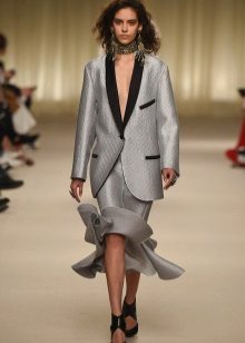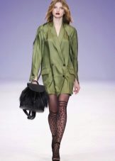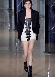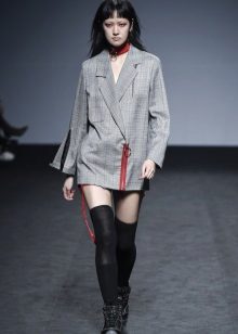 The combination of a wide jacket and a small exquisite dress. Just keep in mind that in this image the edges of your top should end in where and dress. Otherwise, the bow will turn out somewhat awkward.