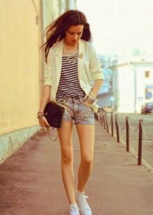 A more daring, alternative option for active young girls is a short jacket combined with jeans or denim shorts. If you choose the latter, then focus on the elongated models.