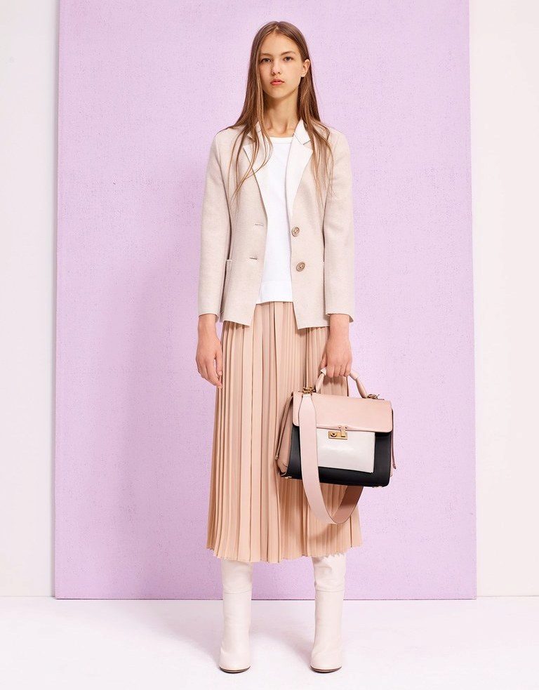 Ageless classics - a fashionable jacket in combination with a handbag and sandals. Here the color of the jacket will play a special role. Relevant are pink, green and chocolate shades.
