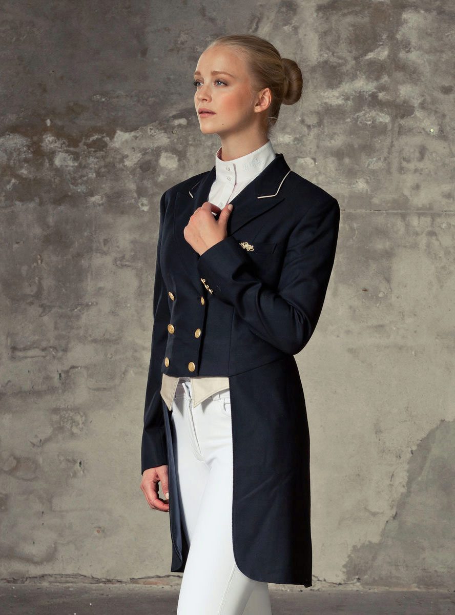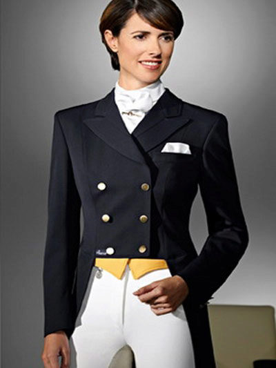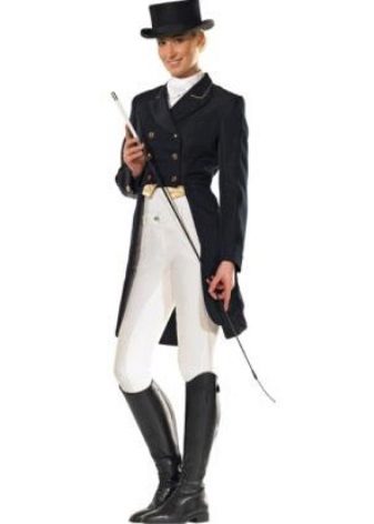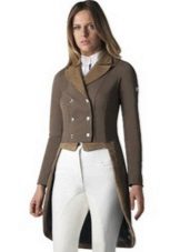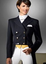 Female dress coat often acts as special equipment for practicing horse riding. In this case, it is usually combined with cotton leggings (with a stretch additive). This suit will provide the utmost comfort in the process of training and competition.
