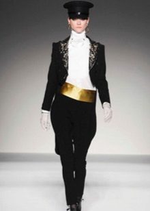 For modern fashion, the penetration of masculine attributes into the female wardrobe becomes regularity. There are many examples of this: take at least a familiar shirt or jacket. Another originally male model that modern ladies successfully wear is a stylish tail coat.