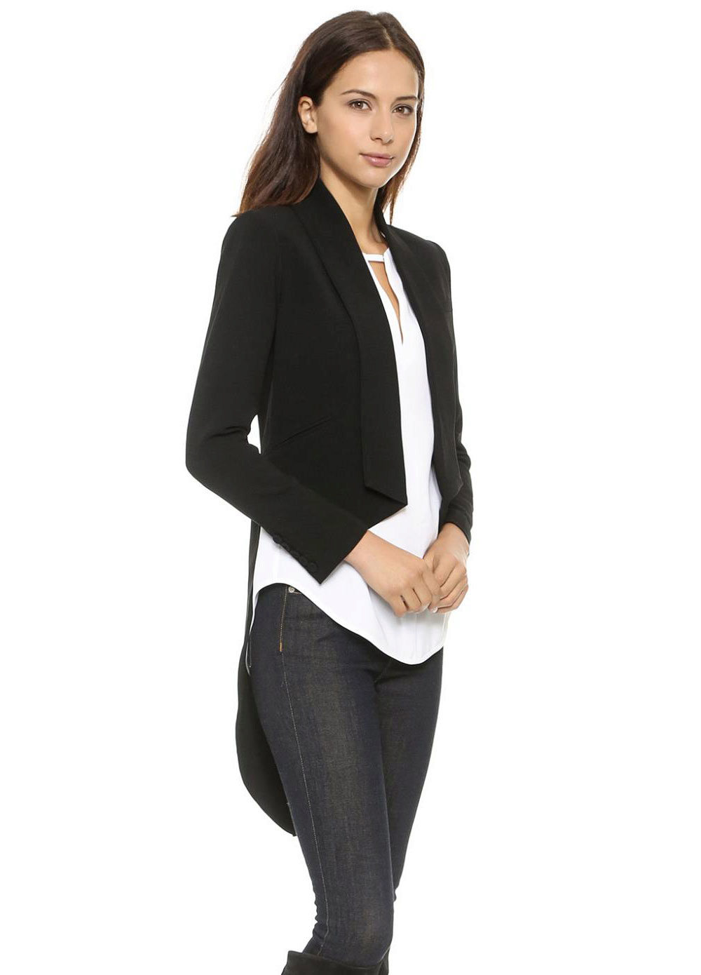 The women's vest looks elegantly resembling a tail coat.Wearing a white shirt, he will give you a festive look, especially if it is a product with shiny lapels, made in black. You can wear this thing on a naked body - you will look very seductive.