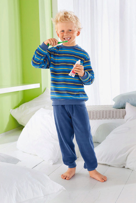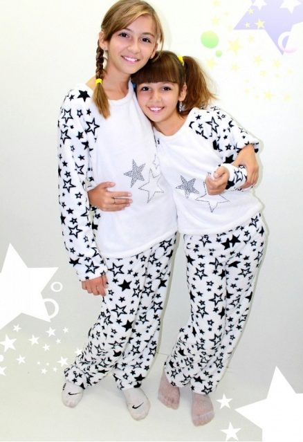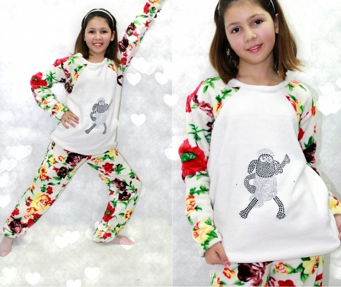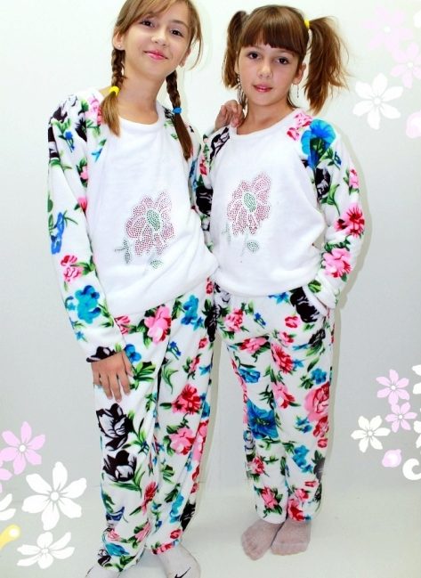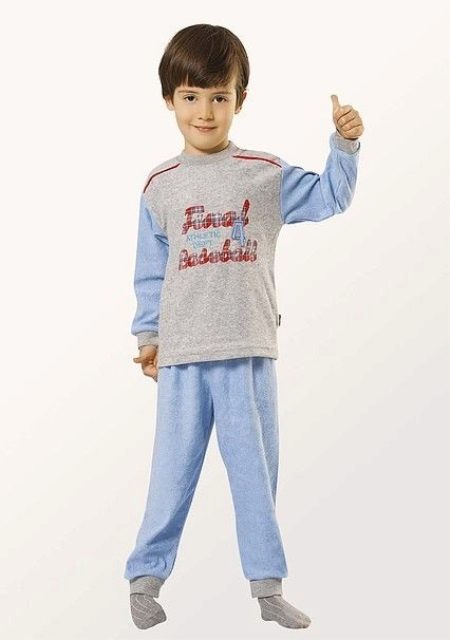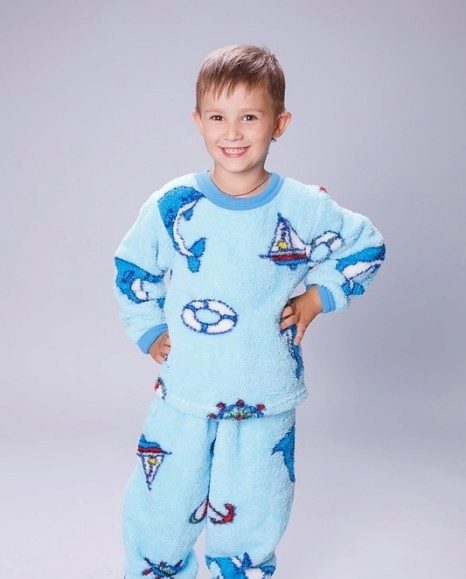 Terry cloth pajamas perfectly absorb moisture and keep warm for a long time, guaranteeing a long deep sleep for both kids, and older boys and girls. Also, this material allows for the tailoring to produce high-quality processing of all internal seams. However, recently more and more pajamas are cut seams outside, which saves the child from unpleasant sensations during sleep.