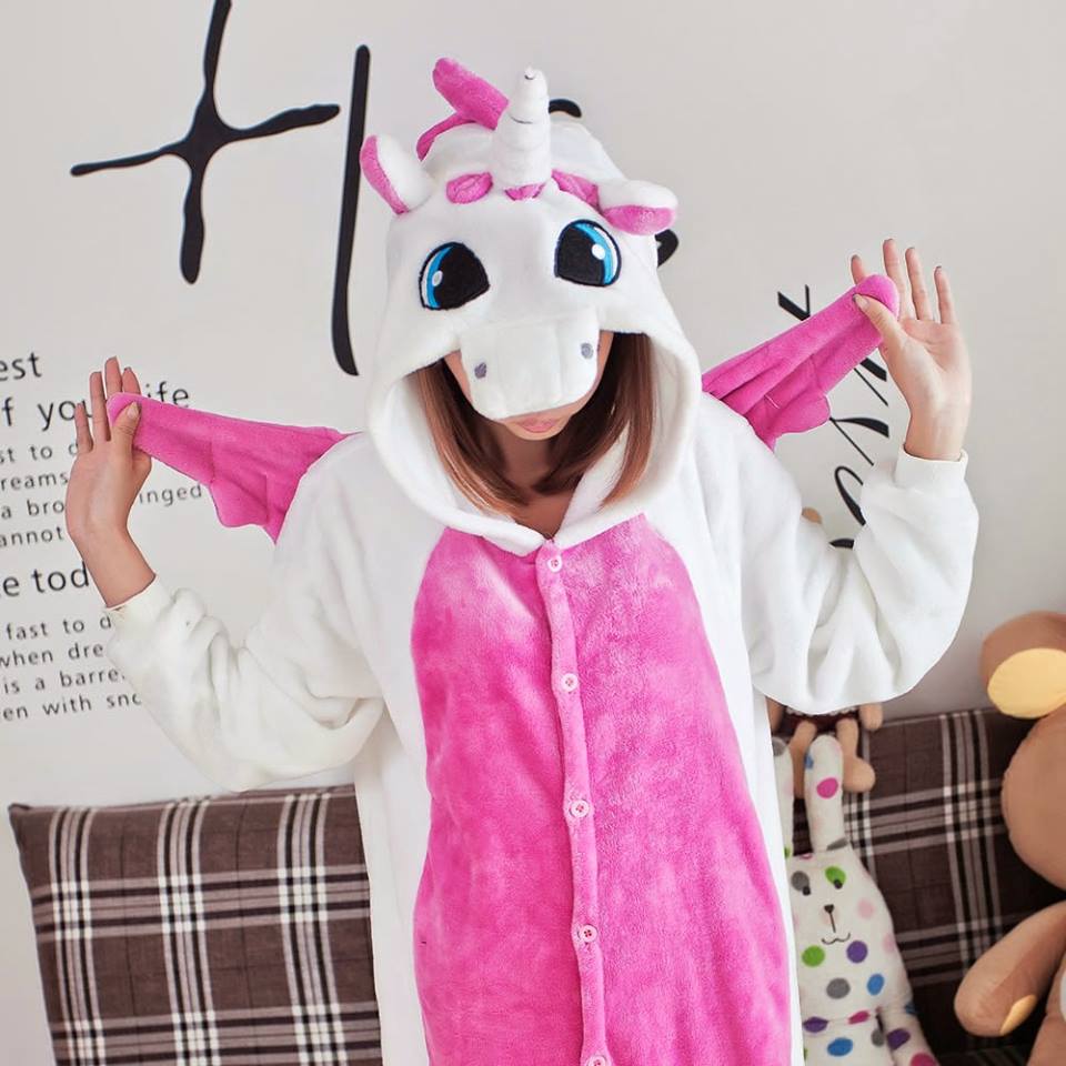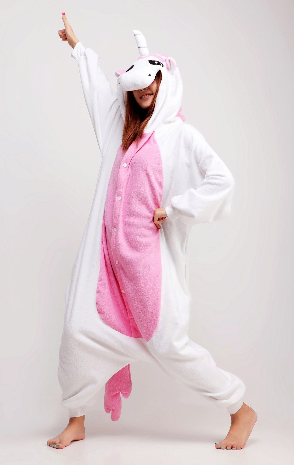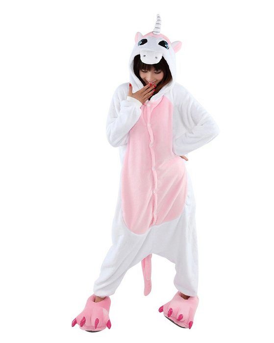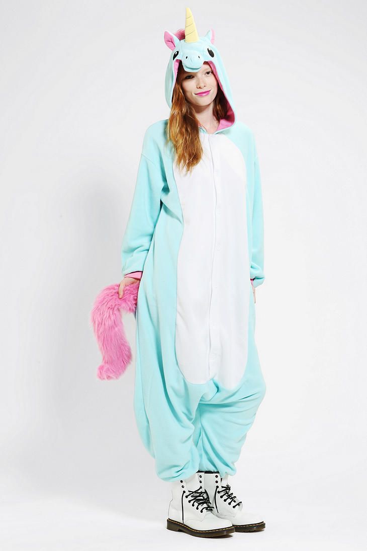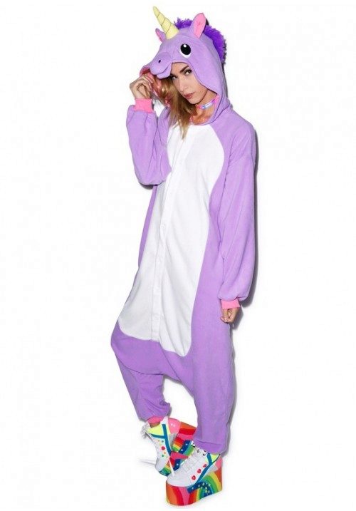 Women's kigurumi can be worn on both naked body and over any clothing. Typically, models for girls are in the form of a free-cut jumpsuit with an obligatory element - a hood, which depicts the large good eyes of a unicorn in the style of anime. Such pajamas can be of two options: with long pants and sleeves and short, in the form of shorts with short sleeves.