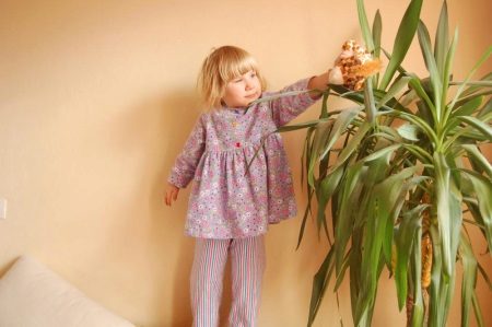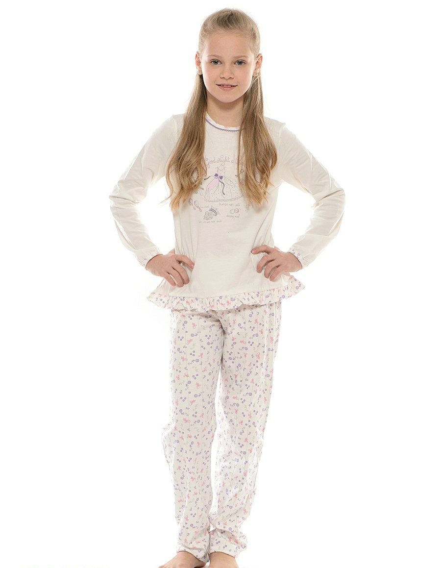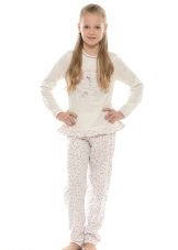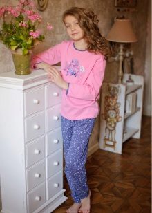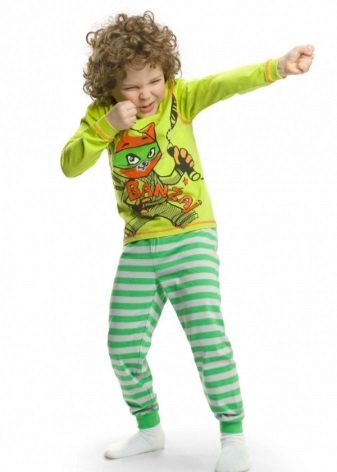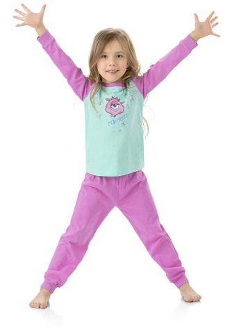 Pajamas can have a completely free or slightly adjacent cut. Pants can be long or short, such as breeches. The simpler the style, the more comfortable it will be in such pajamas to a child. A large number of ruffles, frills, decorative elements can cause certain inconveniences during sleep.
