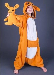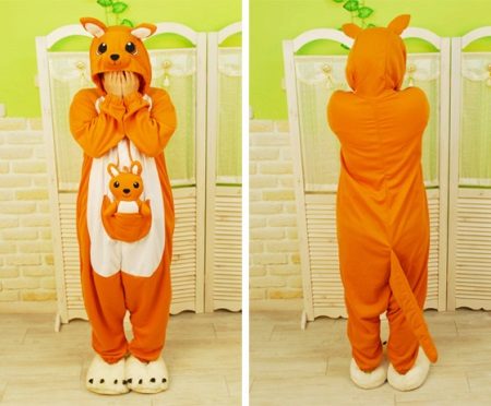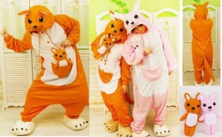 If you move away from the Kigurumi model, but at the same time remain in the subject of love for the Australian animal, you can pay attention to the classic pajamas with a print in the form of kangaroo figures. Among the children's models you can find a pajama suit, on the jacket of which there is a large print in the form of a kangaroo. Or on adult pajamas there is often a patch pocket - a kangaroo, which is more related to the element of decor.
