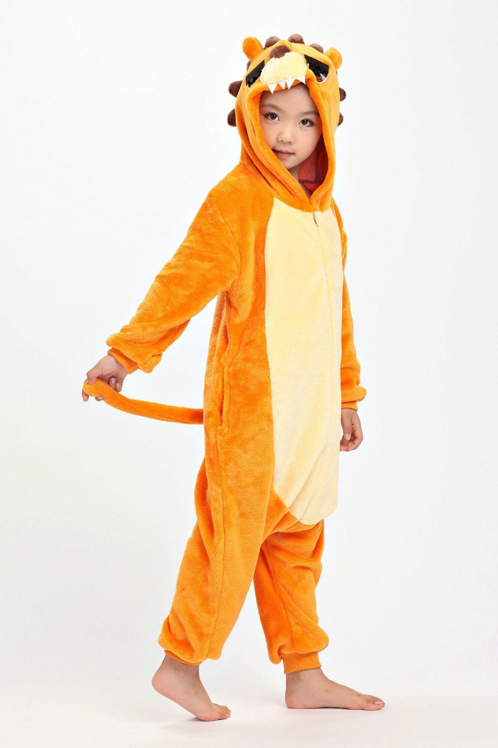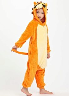 Children's kigurumi pajamas are made of exactly the same material, observing the basic principles of cutting and sewing the product: free cut, hood, pocket.