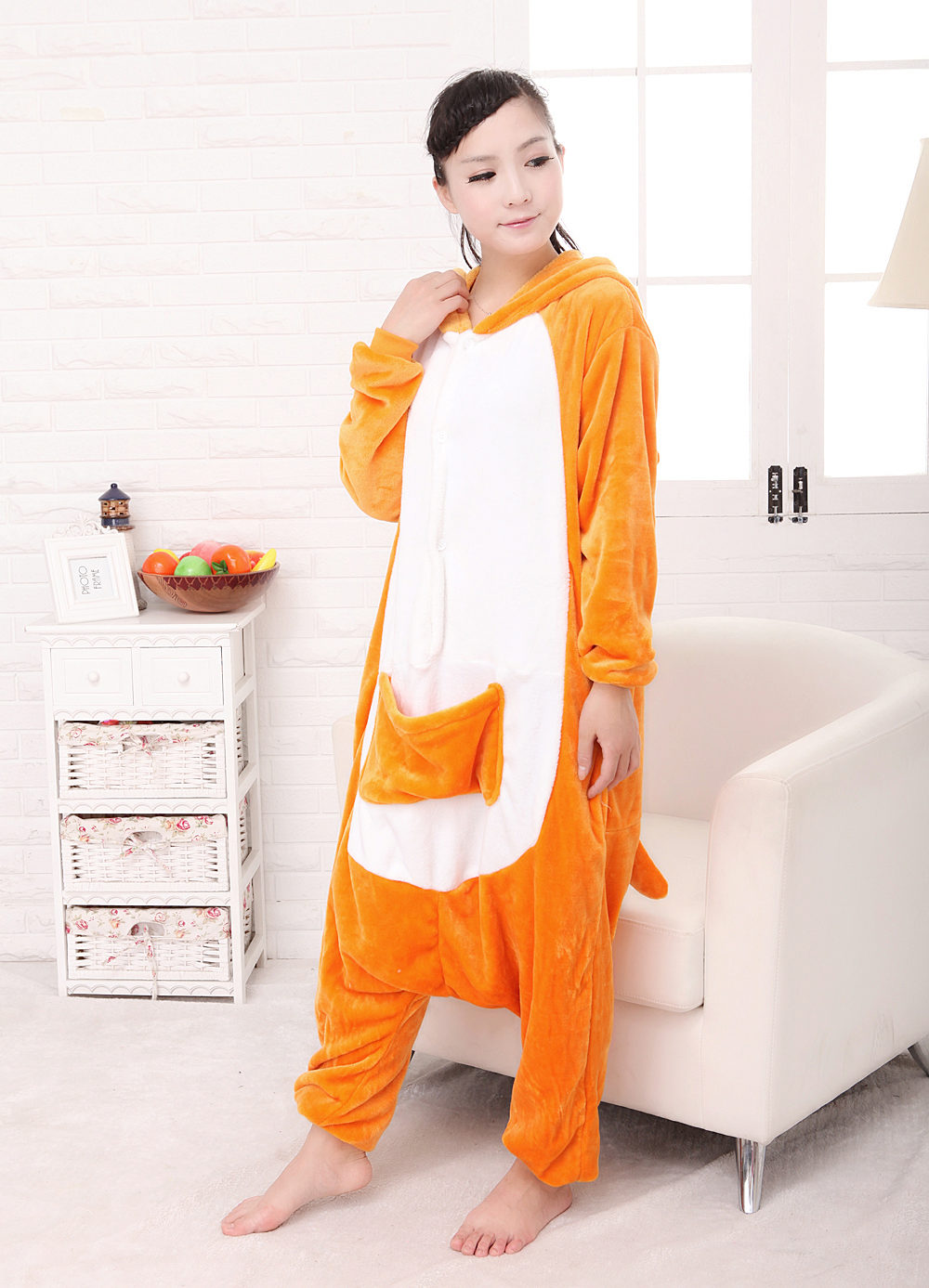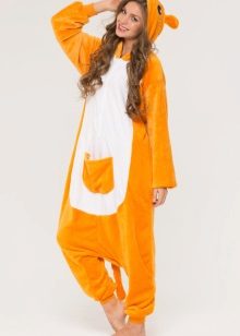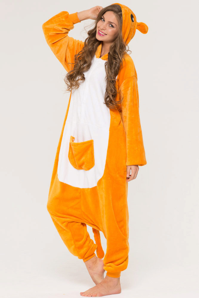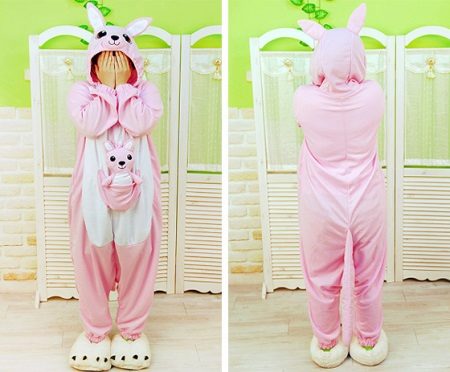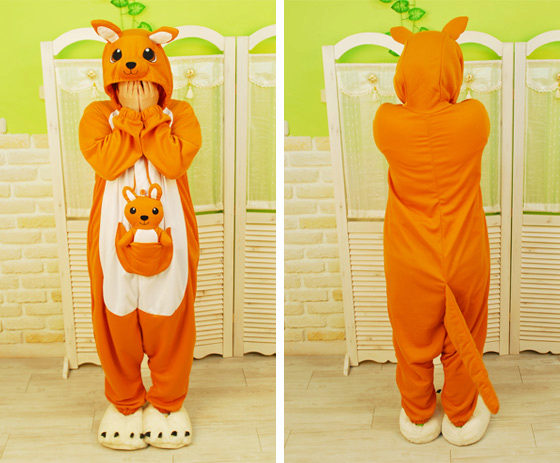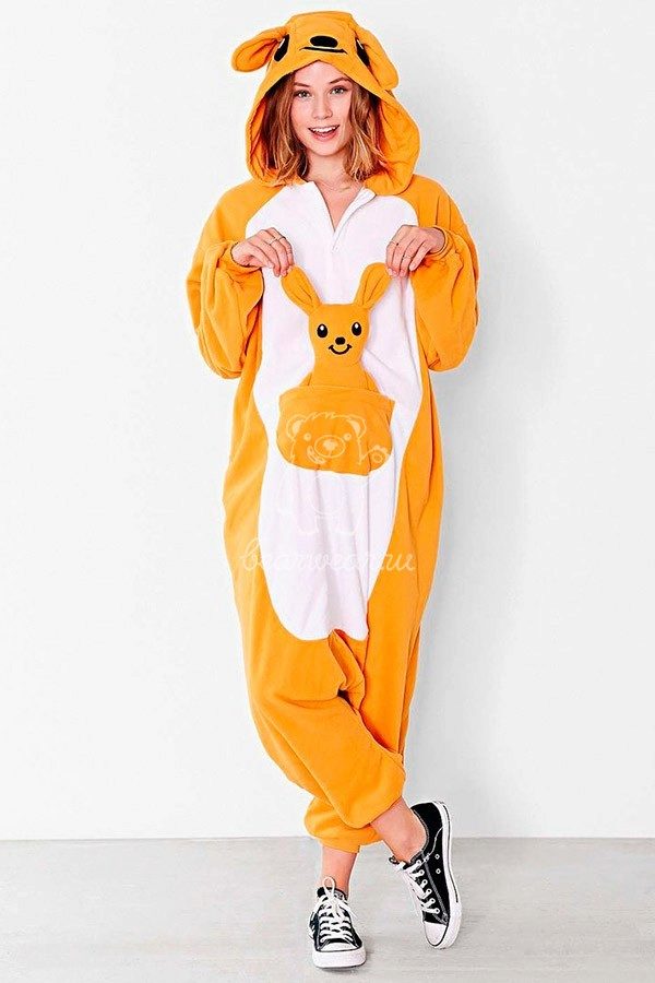 One of the most popular characters in which kigurumi lovers love to spend time relaxing and sleeping is kangaroo. A funny animal with a pocket on his stomach is great for household chores, where you can put small necessary things. The hood looks like a cute animal face, which is facilitated by the presence of ears, eyes, nose and smile - mouth. The whole look of such pajamas helps to raise the mood, and bad dreams in such a cozy suit will bypass the party.