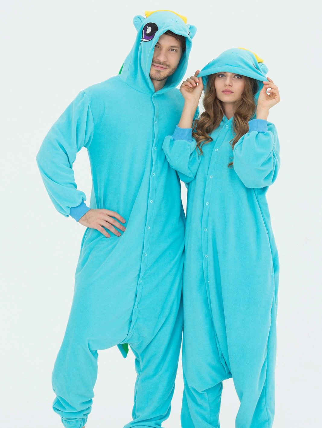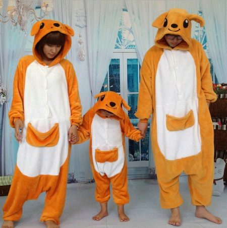 The loose fit and pleasant fabric of the body make their owners not to get out of the kigurumy all day. You can dress up with their families. Male and female models are not much different between themselves, except that the size and location of buttons. All parts are made identical, there is no difference in hoods, pockets on the abdomen and the presence of tails.