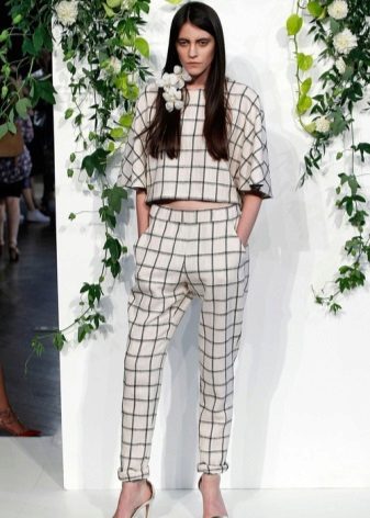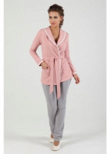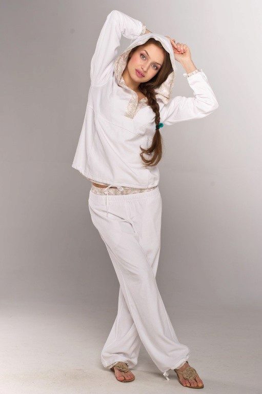 Pants in suit-pajamas are not allowed too loose, long, on a belt or drawstring, on an elastic band. There are options for narrowed pajama pants. Shorts loose, cropped, trimmed with lace or without.