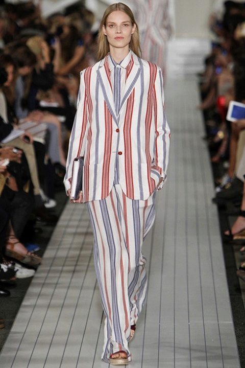 - High heels - shoes should contrast with the cozy image of the suit, seem uncomfortable in combination with comfortable clothes;