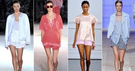 The types of models of pajama style still have a certain tendency towards the classics of pajamas as such. This is necessarily a set: shirt + pants, T-shirt + pants or shorts, and even three: shirt, cropped top or corset, pants. The kit can complement the belt of the same fabric, drawstring.