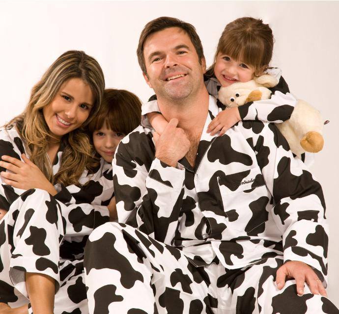 Fabric structure. The main thing is that the suit is not just sitting, but lying, snuggling and just giving a feeling of tactile comfort. The more natural the fabric from which your family pajamas are made, the nicer you will be to spend time in them.