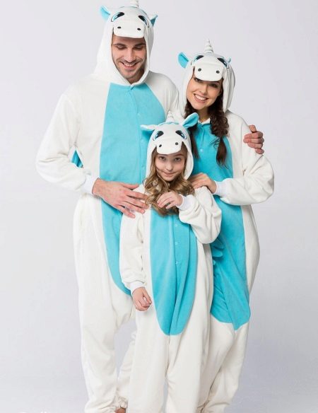 One of the examples of kigurumi, showing how unusual the approach to choosing the same pajamas for the whole family can be. The unicorn is so harmless and cute animal that parents do not have to be confused.The whole family will be able to fully immerse themselves in the world of children's irrepressible fantasy and to feel one and the same.
