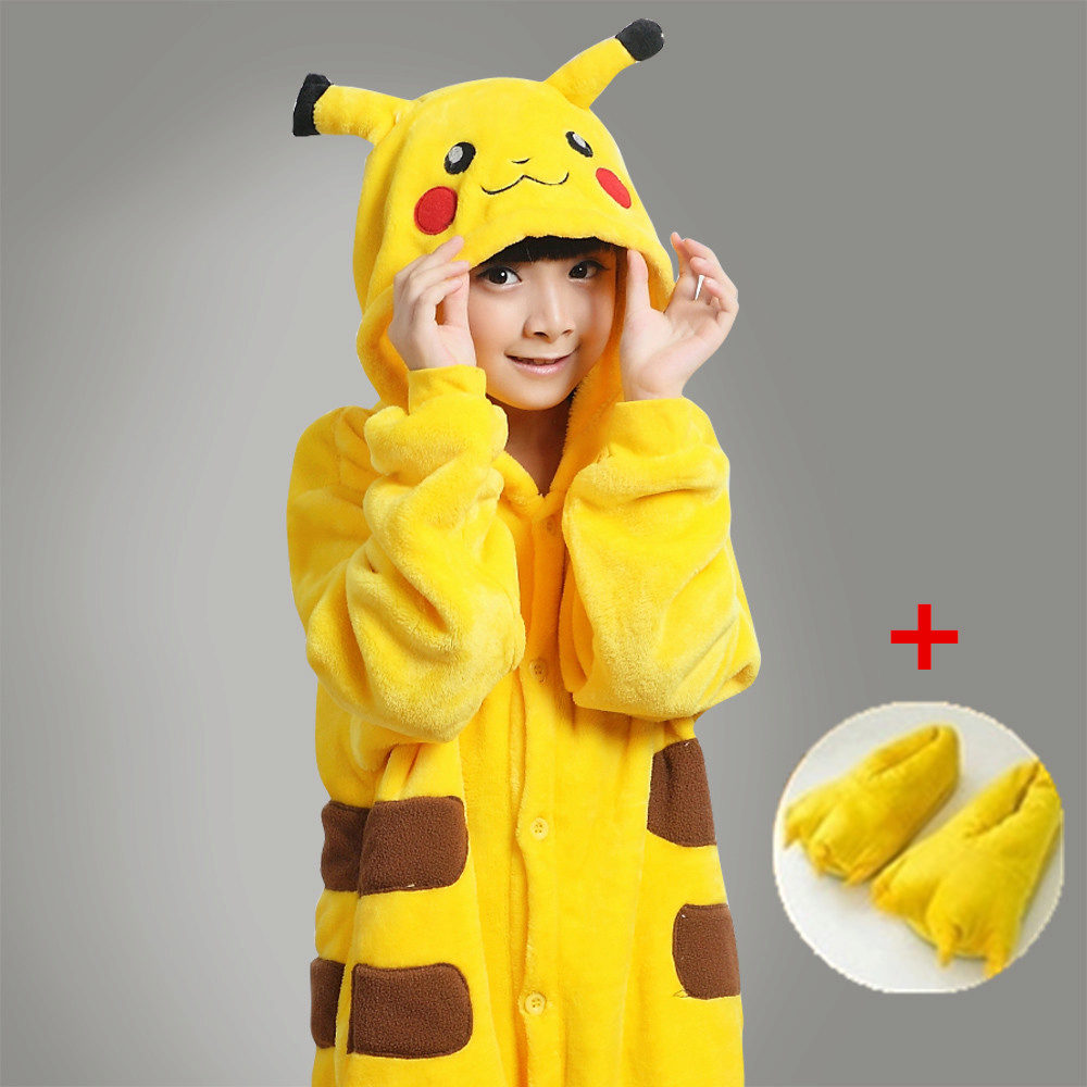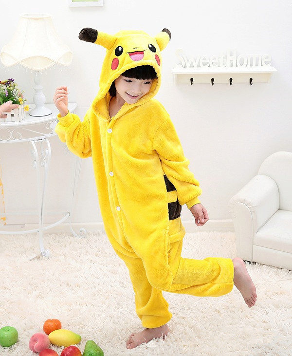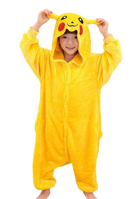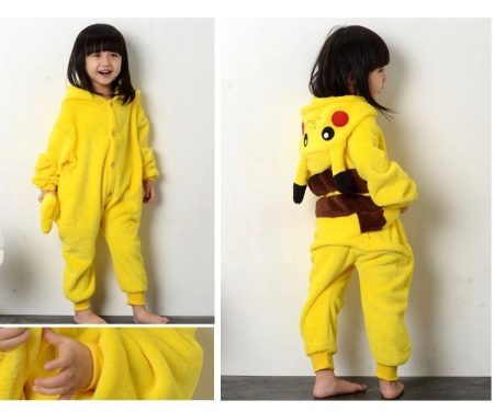 The main feature of Pikachu pajamas is the similarity with this Pokémon. It is necessary to use yellow and black, although there are options where yellow was replaced by pink (the image of Pikachu-girl), but the pokemon did not lose recognition.