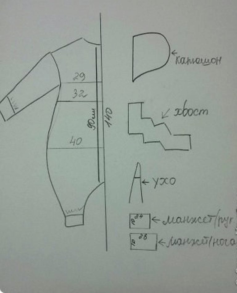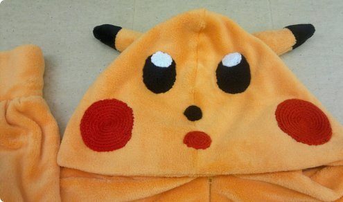 The Pikachu Kigurumi pajamas can be made independently. This requires a yellow-black fabric and a very simple pattern, with only six elements. Some of them are quite simple, these are: