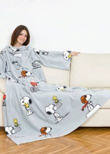 Do not be afraid of the awkwardness associated with the wide bottom of this model - a spacious hem when hiking in the kitchen or bathroom can be thrown on the shoulder in the manner of ancient Roman toga. Pajamas-blankets are often also equipped with a hood, which allows you to comfortably take a nap on the couch, wrapped in a blanket with a head.