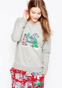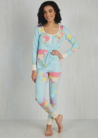 Cool prints add variety and enliven even the most minimalistic models of pajamas. Sleeping T-shirt or sleeved jumpsuit, decorated with amusing patterns, cause an instant smile, and closed legs will be in comfort and warmth both during sleep, and when doing housework or relaxing in a circle of loved ones.