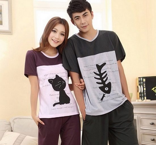 For couples in love, designers have prepared such a non-standard version of pajamas as “two parts of one whole”.