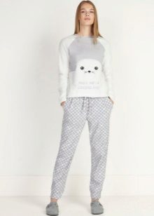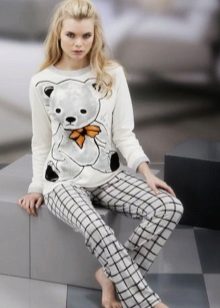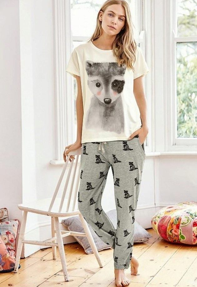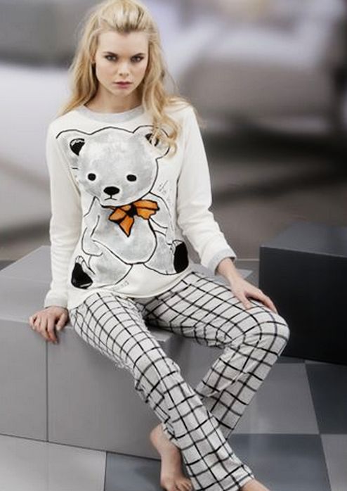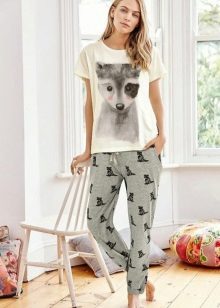 Geometric patterns, so popular in outerwear, are increasingly claiming their rights to pajamas - today, no one should be surprised with a checkered pajamas or a striped version. Also in the trend all sorts of prints. Many ladies love animals - and this is manifested in the design of their pajamas.
