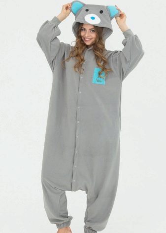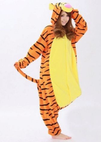 In addition to cartoon heroes, real representatives of the animal world, both peace-loving and carnivorous: cubs, giraffes, cubs, raccoons and rabbits, are often a source of inspiration for kigurumi designers. Such pajamas-overalls in the appendage to the hood, stylized under the muzzle of the animal, get more decorative ears and even the tail of the appropriate form.