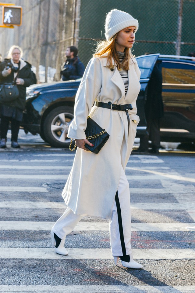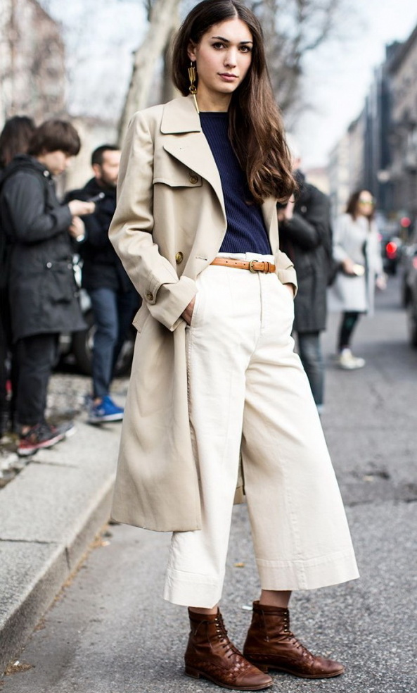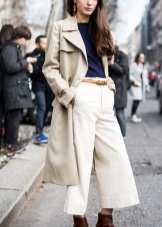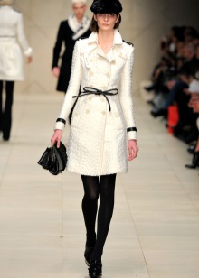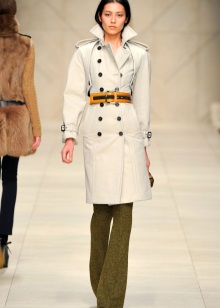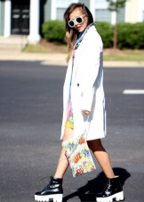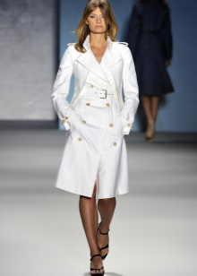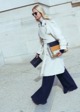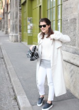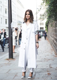White color gives free rein to fantasy and gives women of fashion a great opportunity to complement and change the image every day! The following accessories and types of shoes look great with white cloaks and trench coats: