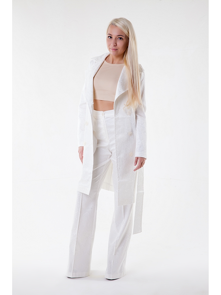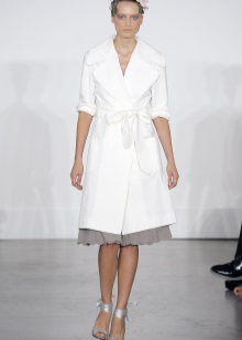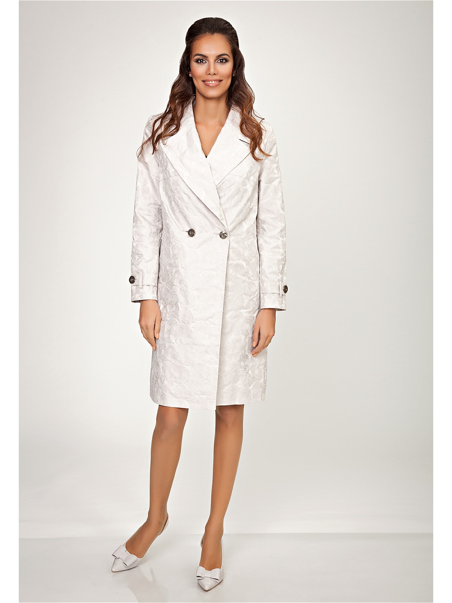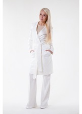 Stunning and high-quality long cloaks fitted or direct cut from this brand make their owner visually taller and slimmer, which, as a rule, is not peculiar to white color. On some models without straps, neat button lines from the middle of the abdomen to the clavicles visually enlarge the chest and make the waist more narrow and feminine.