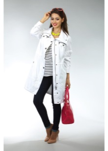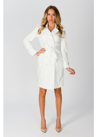 Despite their vulnerability to dirty and rainy weather, such coats have always been very popular among courageous and fashionable ladies who know how to emphasize natural beauty with the help of properly selected clothes. In bad and cloudy weather, the lady in a white raincoat attracts a lot of attention and looks very contrast and stylish against the gray urban landscapes.