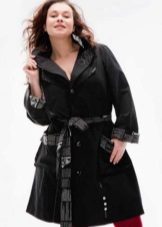 Manufacturers offer full women models of raincoats with distracting elements. For example, with a high waistline. An asymmetrical zipper, such as a slanting zipper, is also relevant. For a full body, it is important to visually lengthen growth. Here will help cloak with a belt.