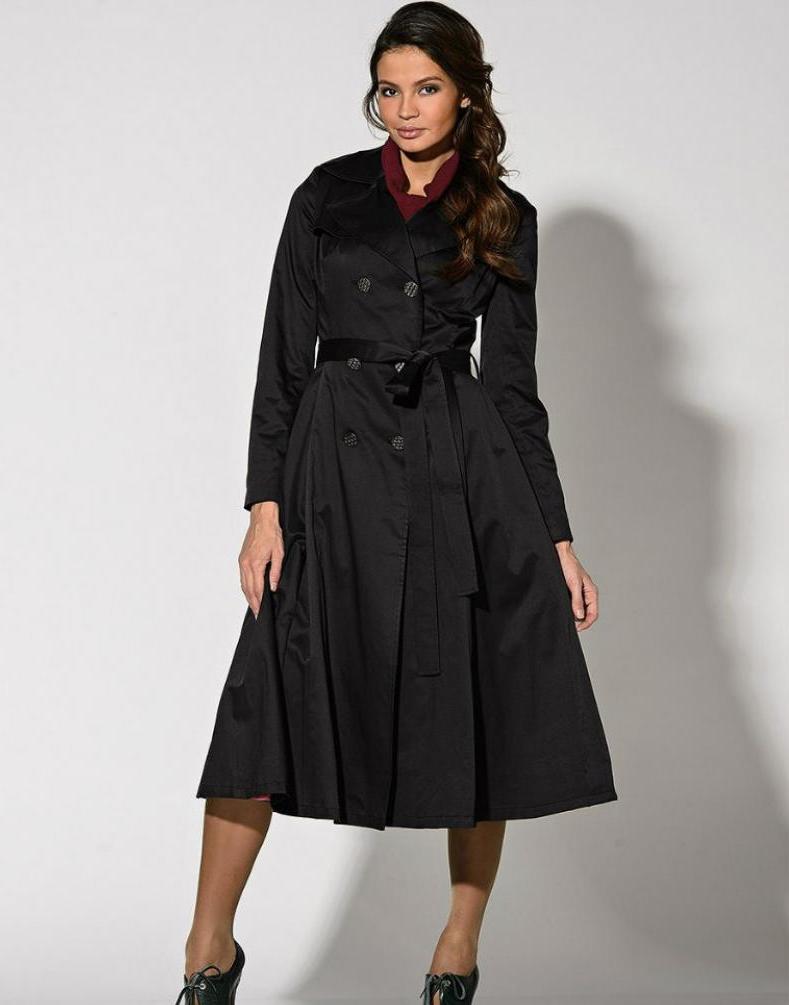 This model is suitable for owners of any physique. She makes the image more feminine and sophisticated. Such a raincoat keeps its shape perfectly, and a beautiful belt visually gives the silhouette an hourglass outline. To make the image perfect, you need to choose the right accessories and the color of the product.
