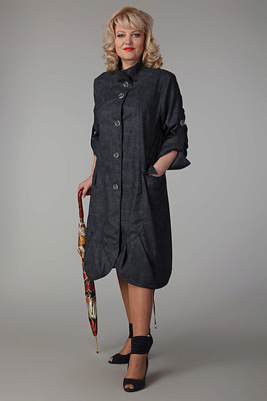 The optimal length of a large raincoat is mid-thigh. This style hides the problem area and makes the girl taller and slimmer. If necessary, deviations from the specified length are allowed within