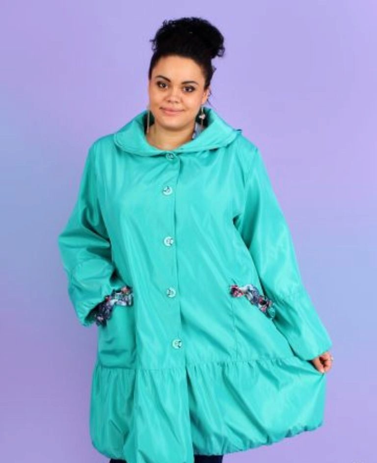 The fact that wide shapeless models hide a complete figure is an absolute fallacy. Choose models with a clear silhouette. They visually make the shape slim and fit. Even a free coat should have a clear outline. Remember this when choosing a raincoat for obese women.