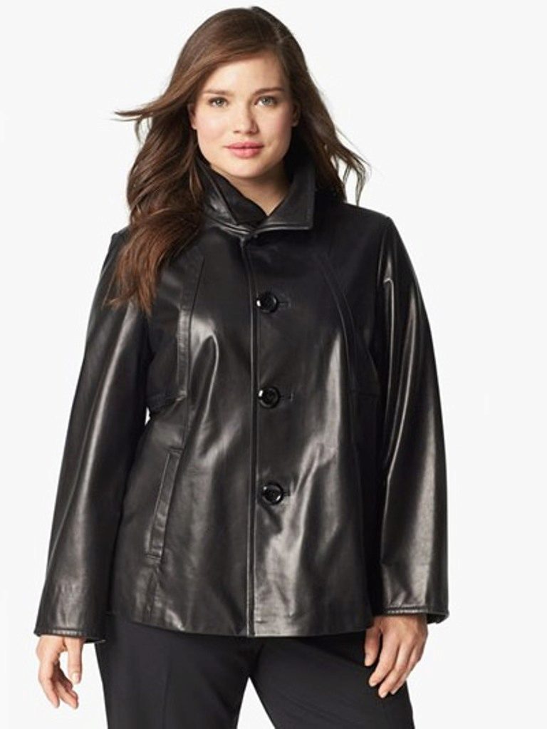 Leather coats deserve special attention. They are timeless! And for obese women, you can choose a suitable leather model. It is important that the skin is soft. And avoid patent leather!