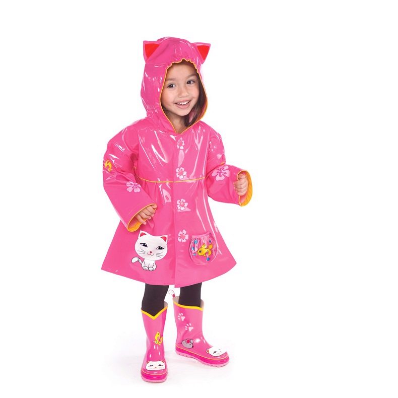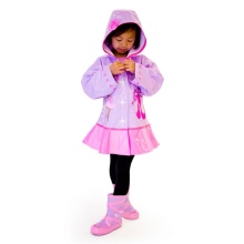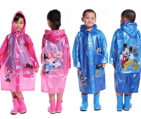 This stage in the choice of a raincoat can be entrusted to a child, he should still wear this raincoat. As practice shows, the boys choose models of blue, red or green colors, on which there is an image of a favorite hero from the cartoon. As for girls, here most often the choice falls on pastel colors and bright colors (pink, yellow, purple, blue). On raincoats that girls like, in most cases there is a large print or small pattern. It is the parents who evaluate the material and the quality of the seams, and for the child the appearance of the raincoat, its brightness and expressiveness are more important.