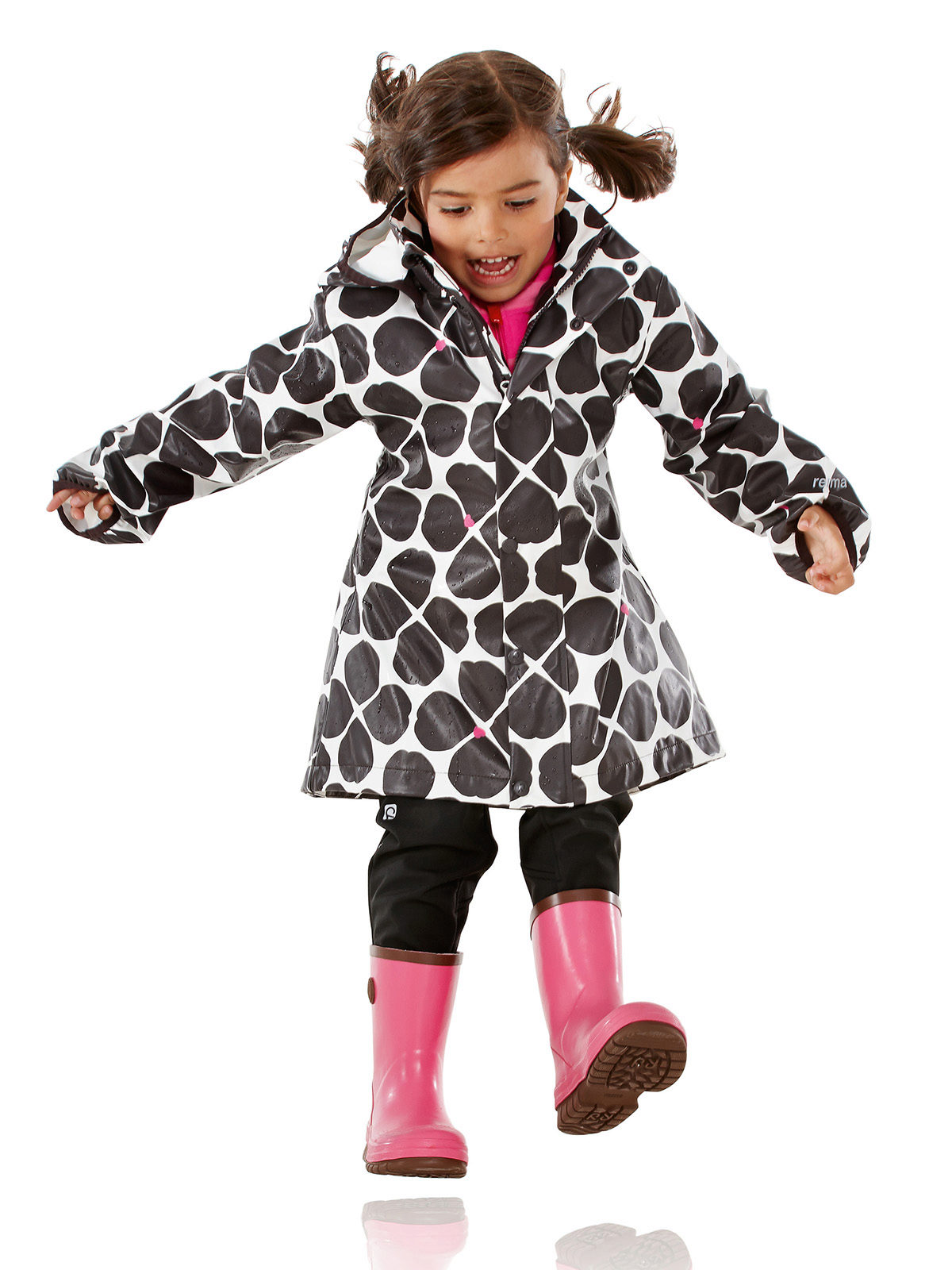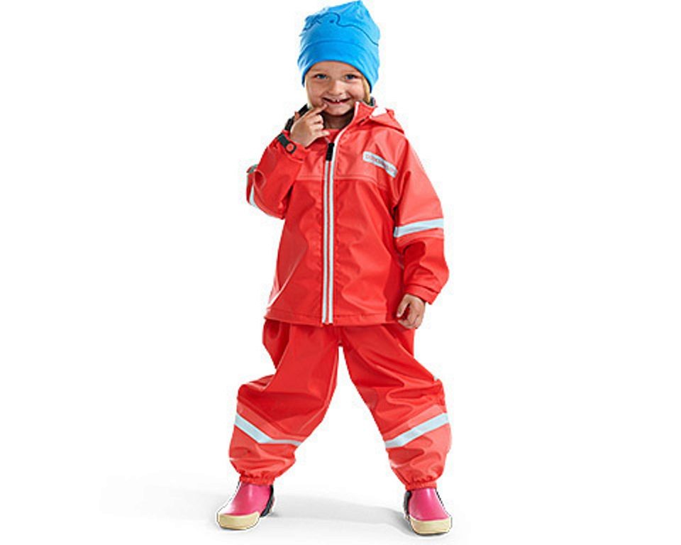 Trying on a raincoat, the child must move in order to exclude the tearing up of the rain cover and the constraint of movements.