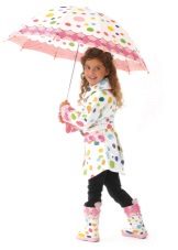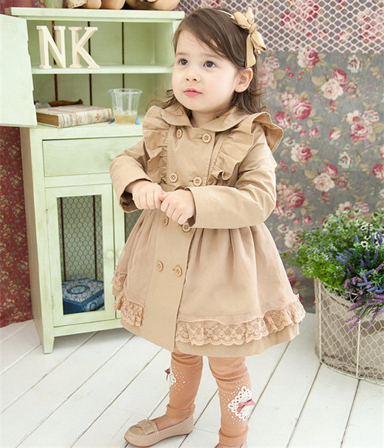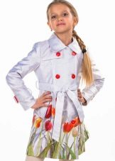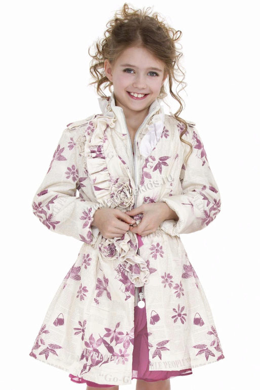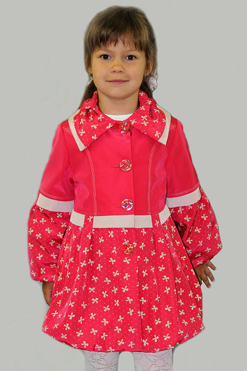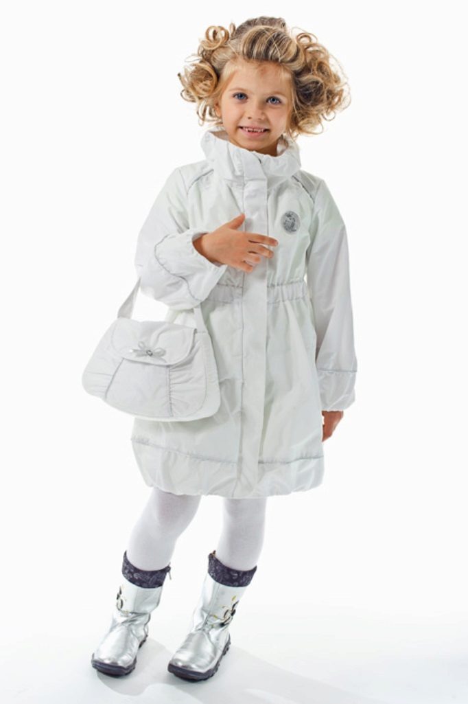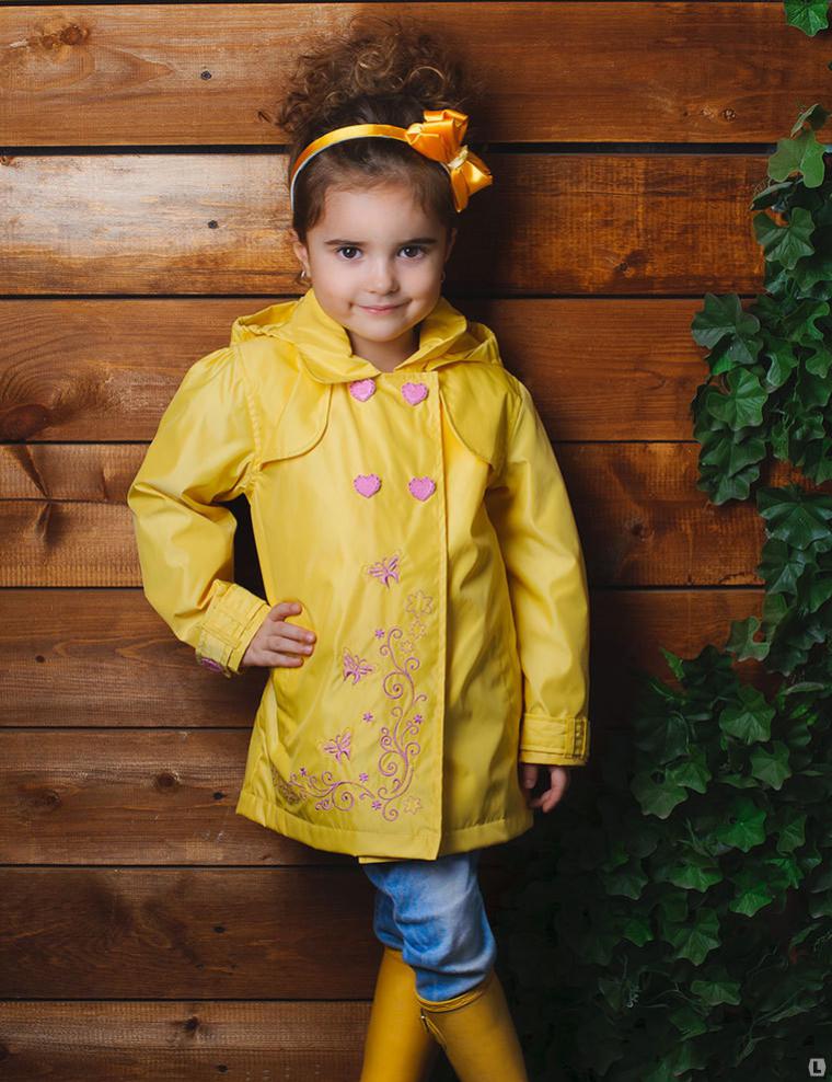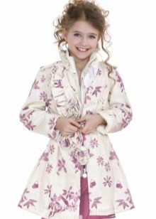 Raincoats of beige, white, soft pink, soft blue colors with decorative embroidery, ribbons, bows, ruffles will look elegant and cute on little fashionistas.
