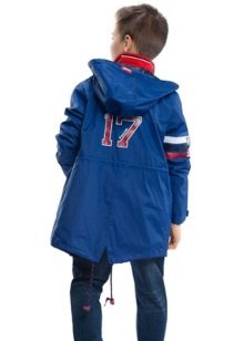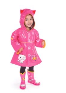 Raincoat poncho - this is a kind of sleeveless rain cover that can be worn over other outerwear. In some collections of children's clothing can be found such a model as a raincoat-jacket. It has a straight, rather than a fitted, slightly elongated silhouette, suitable for both girls and boys.