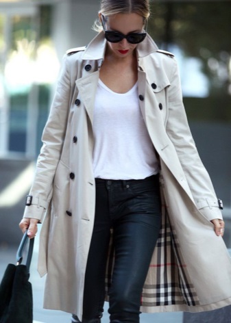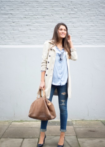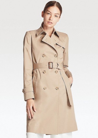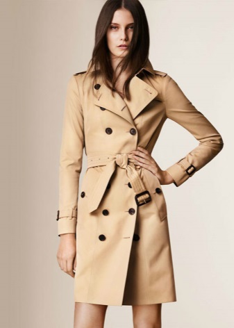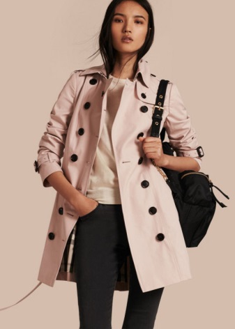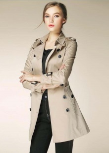 Trenchcoat can be compared with a little black dress, because it should also be in every woman's wardrobe.This coat is double-breasted, so girls with large breasts should be wary of such clothes. Yes, and buttons located in two rows at the top of the raincoat, will add a little volume.