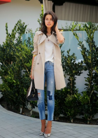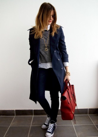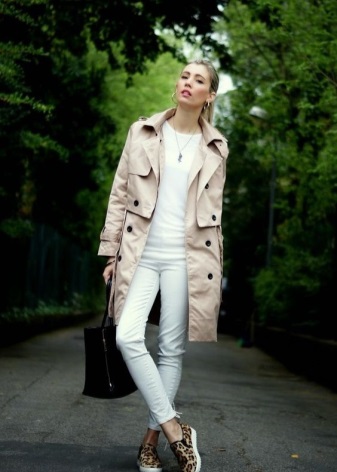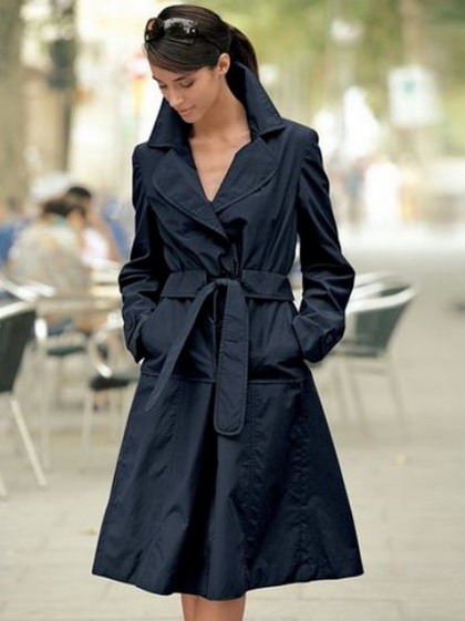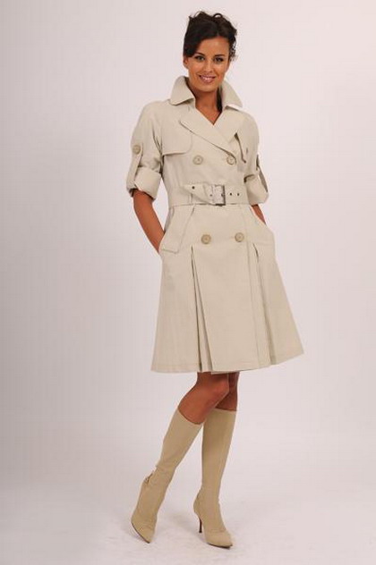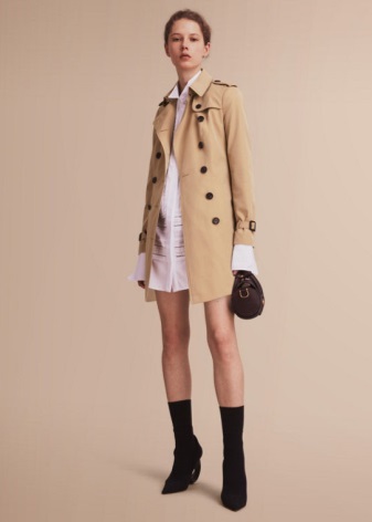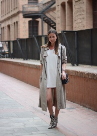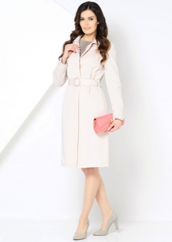 - Dresses and skirts look good with raincoats that have a belt or belt. In this case, the raincoat should completely cover the clothes. It is unacceptable even a few centimeters of hem that will look out from under the raincoat.
