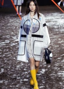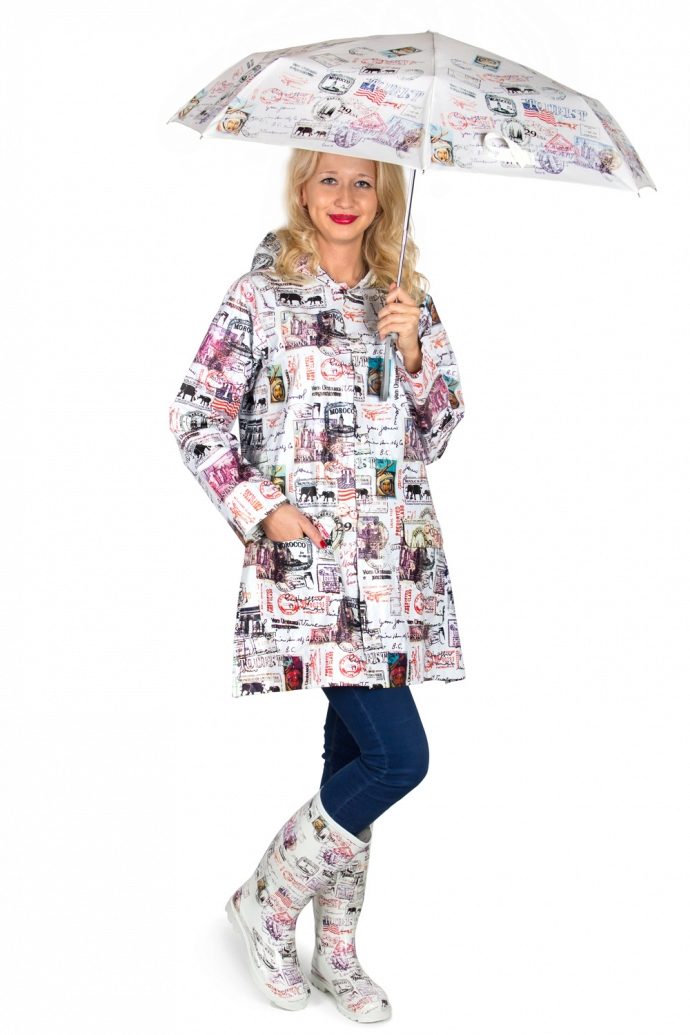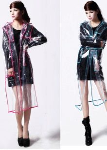 For people who lead an active lifestyle, do not interfere with the purchase of a raincoat in a sporty style or a shortened varnished model of bright color. And the young ladies who, even in bad weather, do not want to part with the dresses, will like the transparent raincoat. It should pick up style, completely covering a dress or skirt.