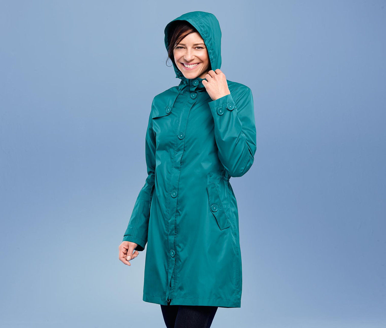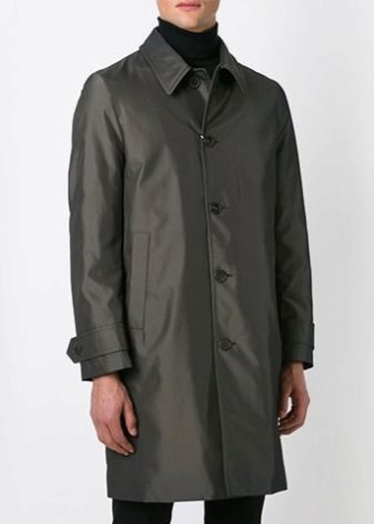 The original mac model was pretty long. Now, modern models of raincoats can be found of any length, but, in general, waterproof raincoats are limited to a length slightly above the knee. Short models are used only in combination with trousers from the same moisture-proof material.