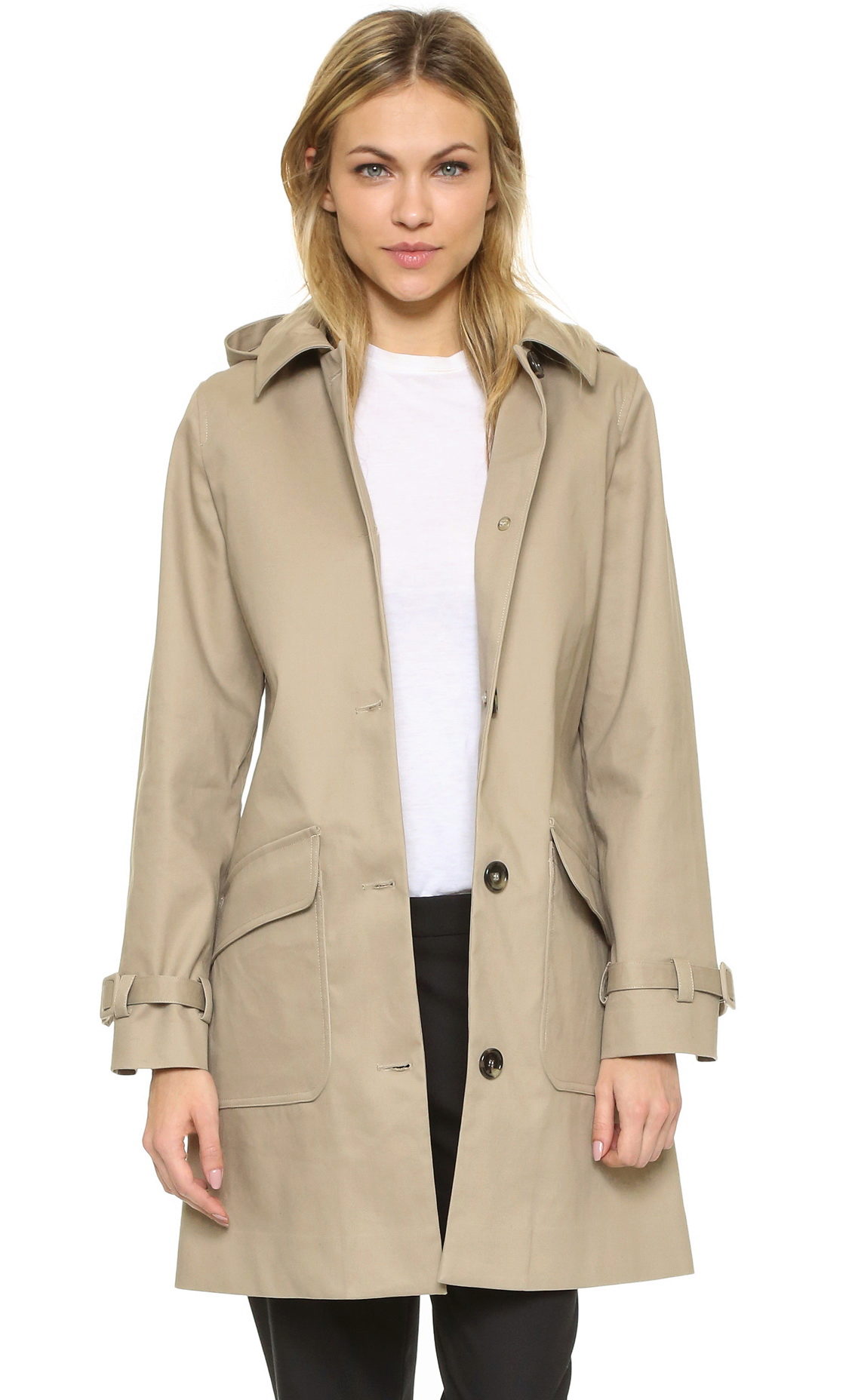 Thanks to the free cut under it you can even wear a jacket. Macs are suitable for casual, and at the same time elegant city looks, perfectly matching jeans, sweaters and cardigans.Under the raincoat fit any type of pants. A business lady, nothing prevents to combine it with a classic office suit.