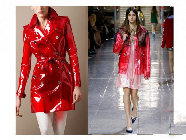 There is even a fabric that mimics patent leather. This raincoat fabric is called “lacquer” and is obtained by coating the upper base with a special latex film. Such material is characterized by high water-repellent and windproof properties.