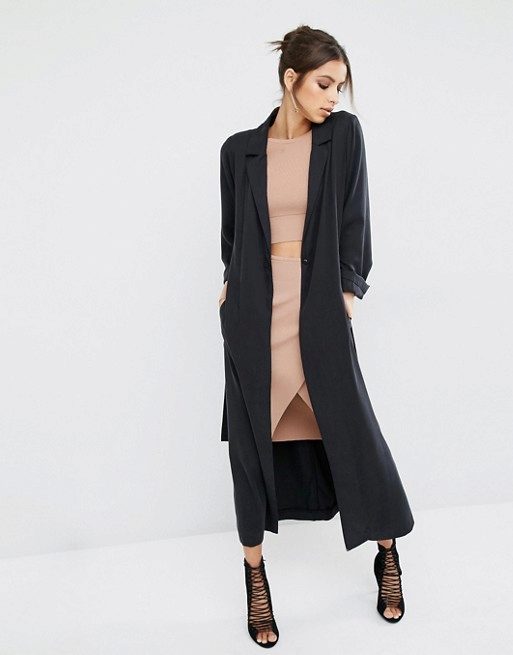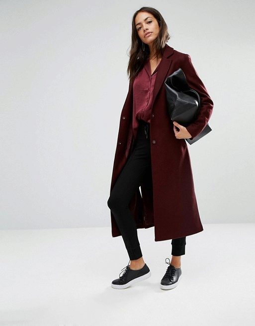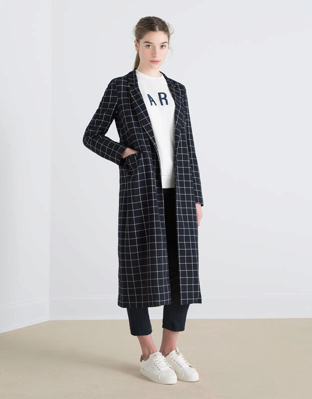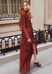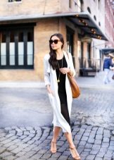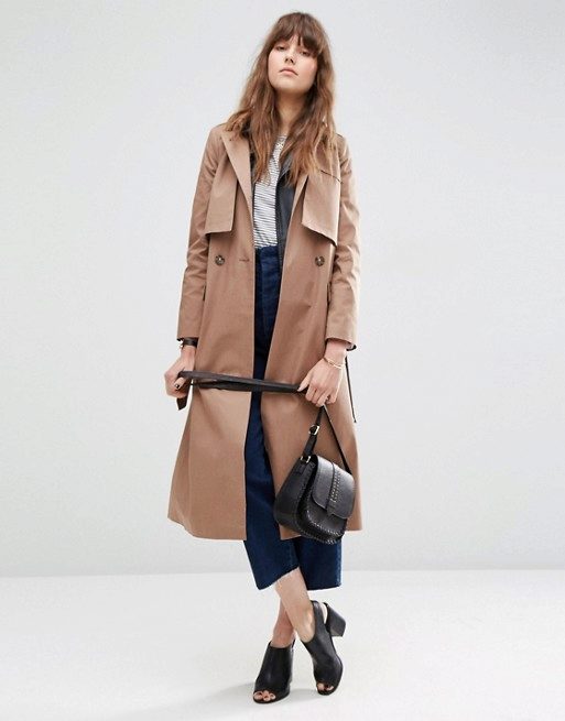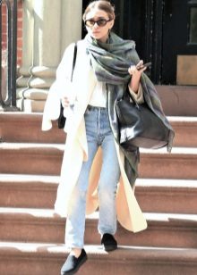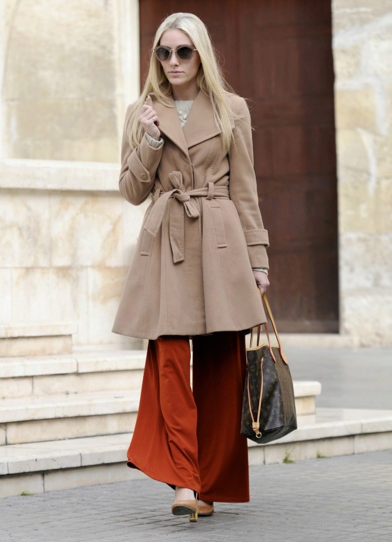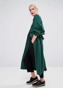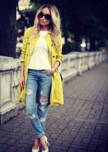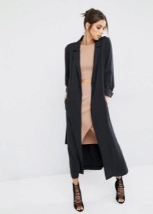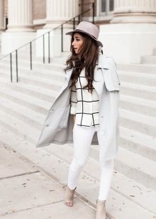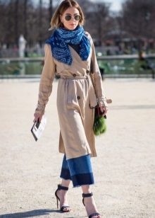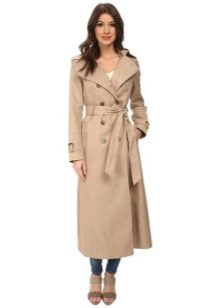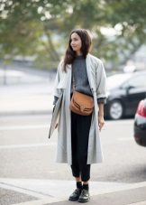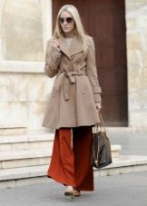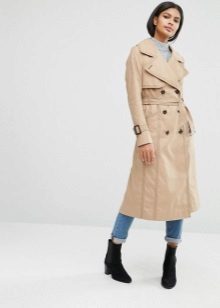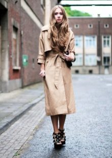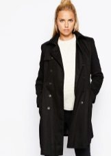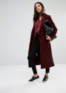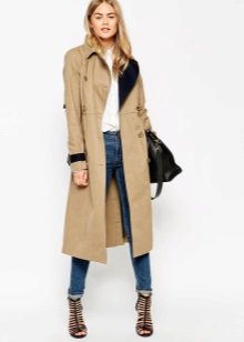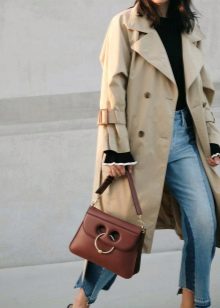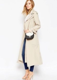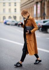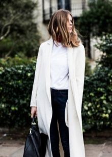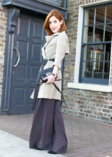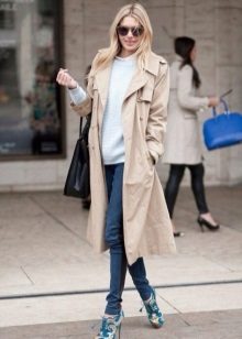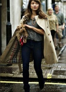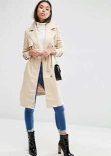 Long coats are suitable only for tall girls. It is best to wear it with narrow cropped trousers or jeans, complementing the image with a high heel. Prefer the classic model with a belt at the waist.