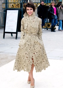 Full girls should choose cloaks that distract attention from existing shortcomings. For example, it can be a knee-length model with an over-high waistline. She allows to emphasize a breast, having hidden volume on a waist and hips.