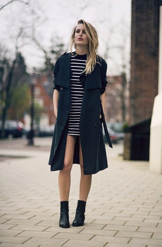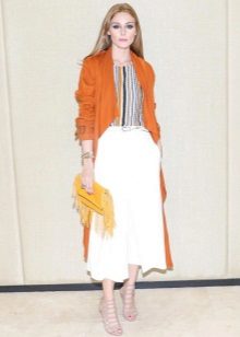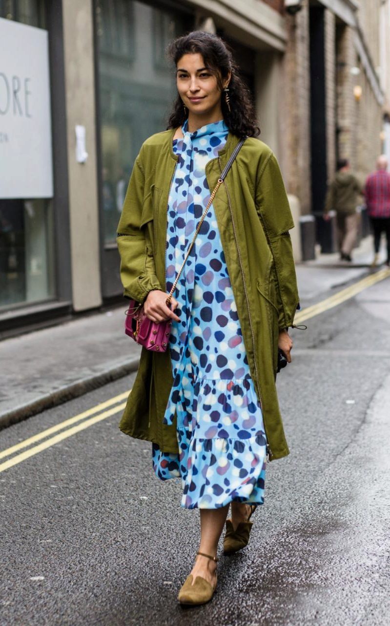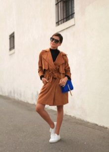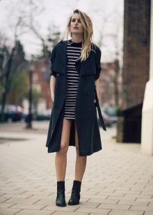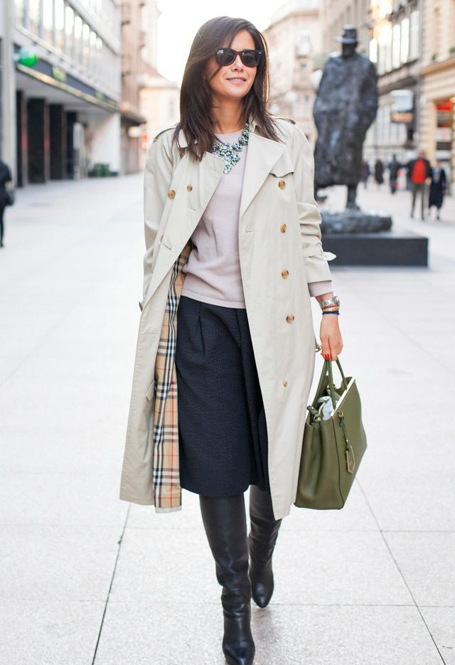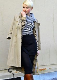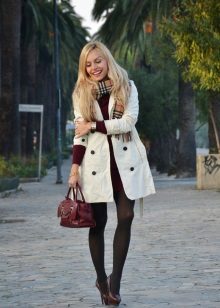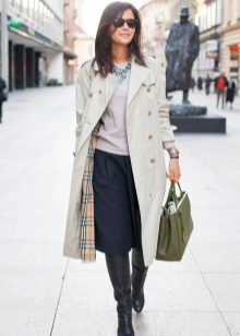 Also, to any raincoat, you can choose the appropriate style of a dress or skirt, with which it will look perfect. A classic model just below the knee will suit a short, even dress.