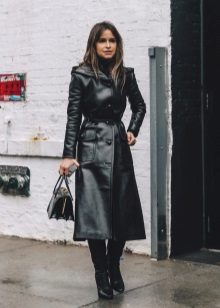 Leather coats are now at the peak of popularity, they are pleased with a variety of models, styles and colors. You can wear it with absolutely any clothes, be it a skirt, jeans or pants. Leather coat does not get wet and looks expensive, stylish and fashionable. Its only drawback is the high cost.